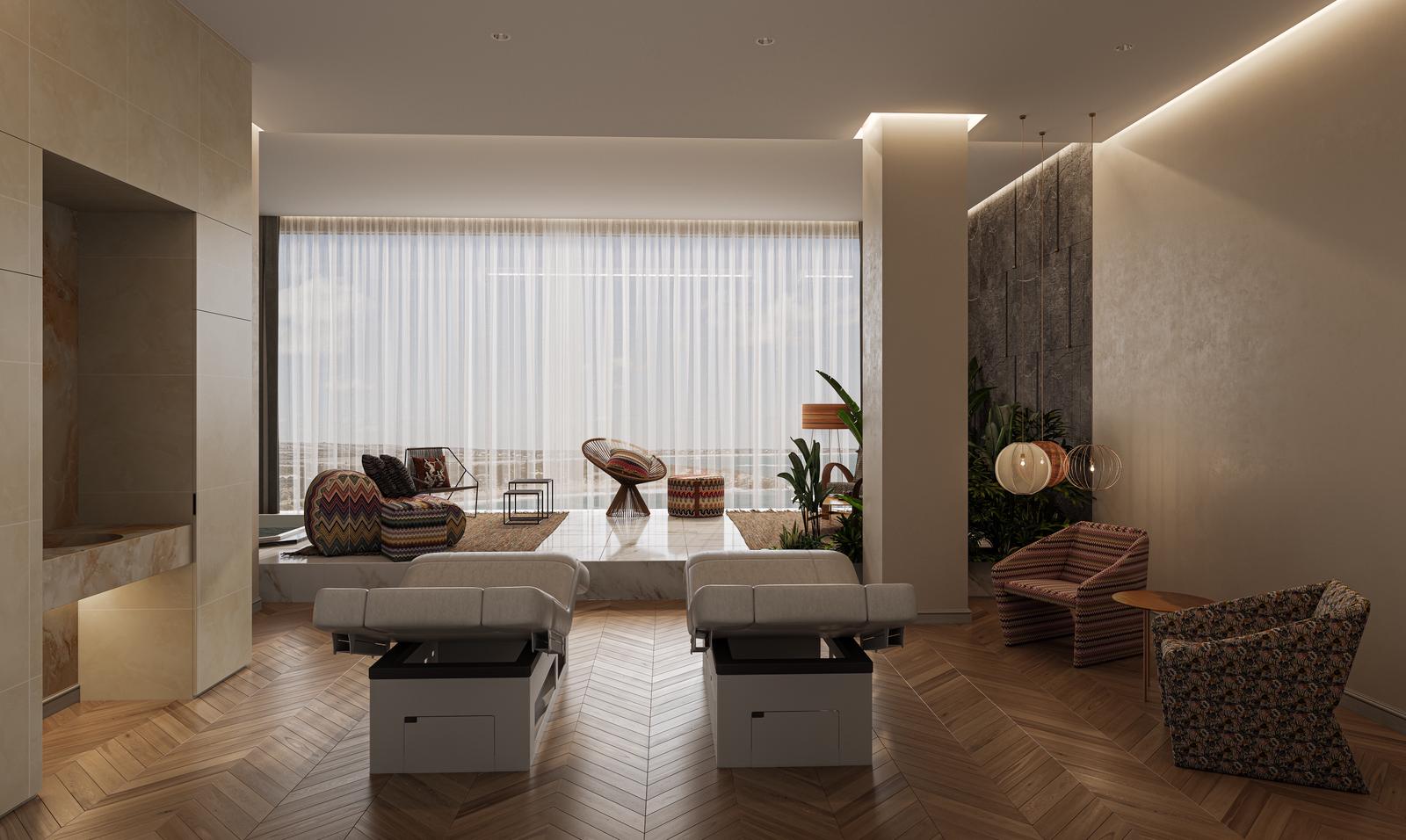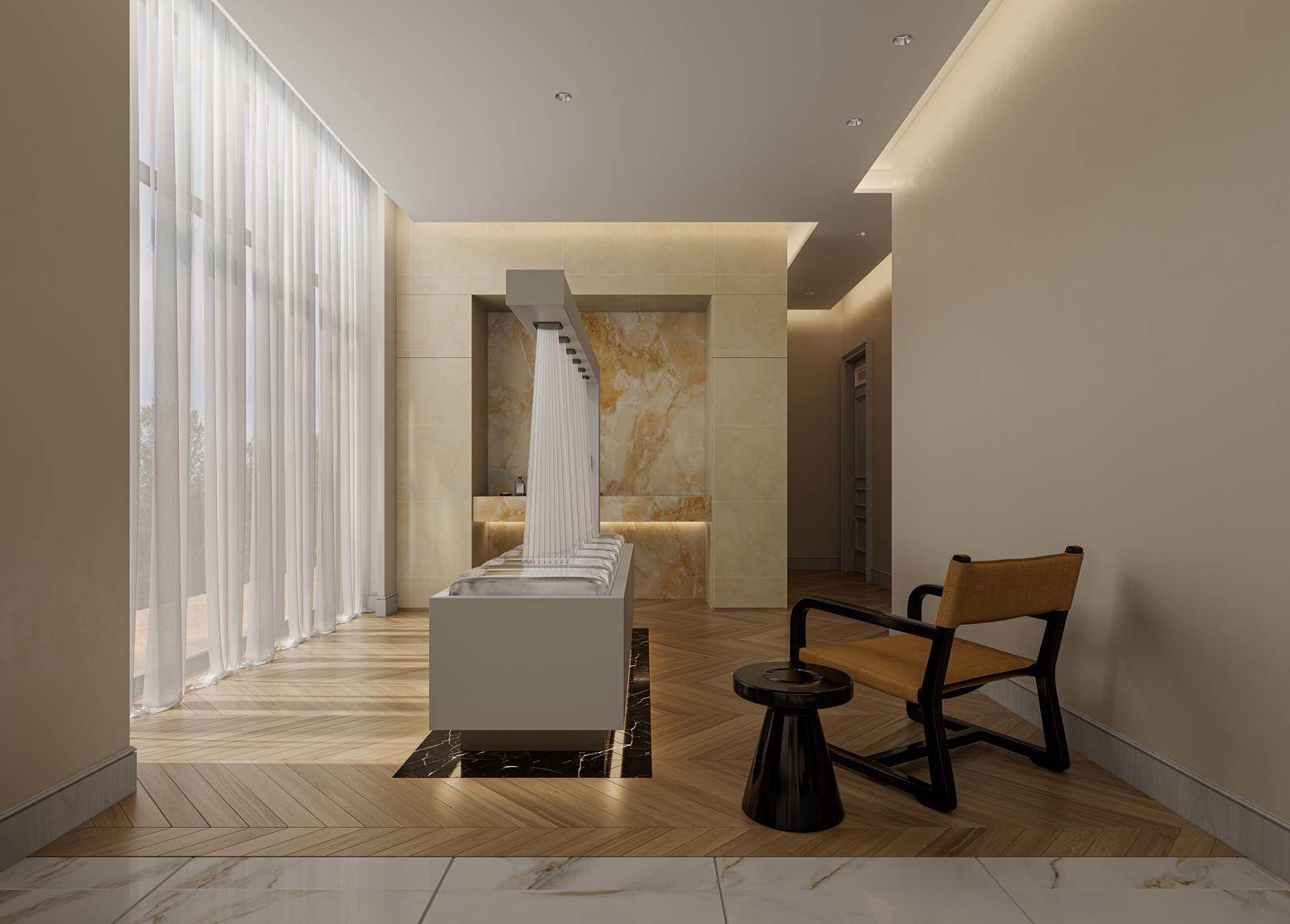 This project, conceived as a sanctuary of wellness and relaxation, draws inspiration from its picturesque lakeside setting, inviting the calming elements of water into every aspect of its design. From the moment one steps into the Luna Lake Spa, they are enveloped in an atmosphere of serene luxury. Gaetano’s design philosophy shines through in the harmonious balance between indoor and outdoor spaces, creating a seamless flow that encourages guests to journey through various states of relaxation and rejuvenation.