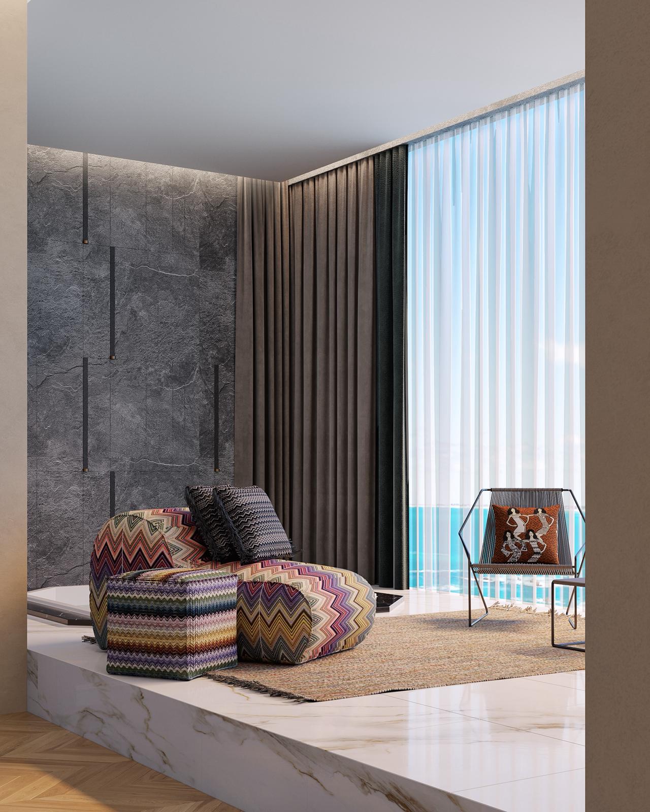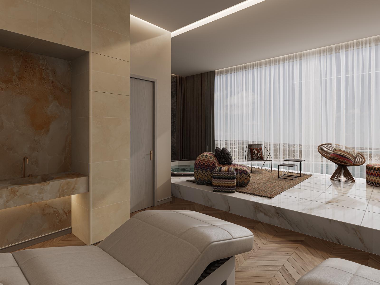 The Luna Lake Spa is not just a space but an experience, meticulously crafted by Gaetano Scintilla to transport guests to a realm of peacefulness and beauty, standing as a hallmark of Gaetano’s innovative design approach.